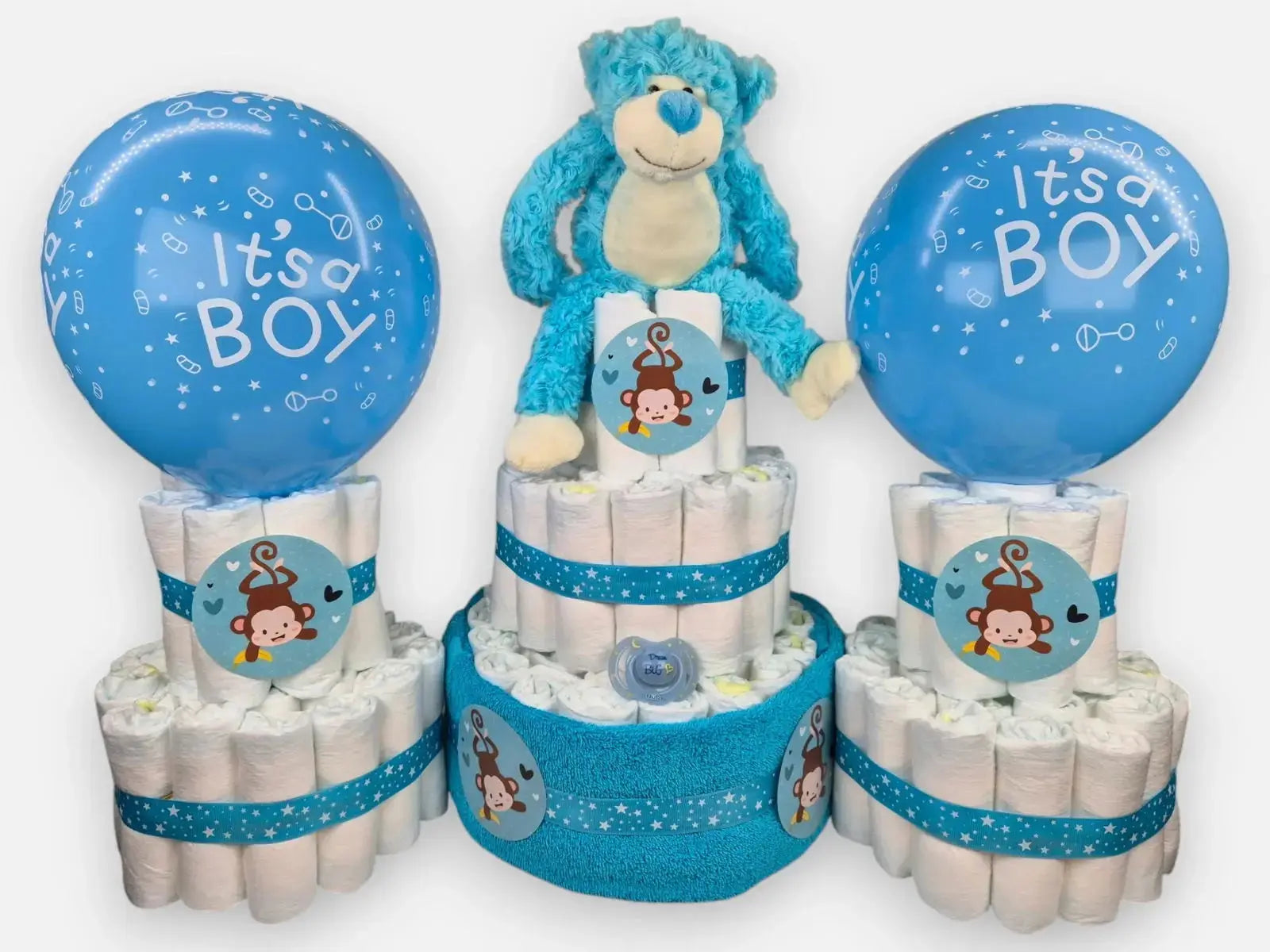 Onze luiertaarten zijn verkrijgbaar in diverse maten, kleuren en thema's. Zo is er altijd een stijl die past bij de babyshower en het geslacht van de baby.