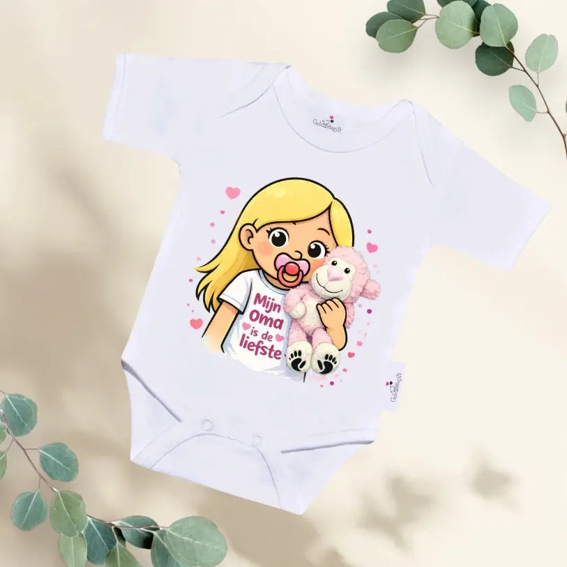 Het rompertje Meisje met knuffelaapje is een lief en vertederend babyrompertje dat warmte en geborgenheid uitstraalt. De schattige illustratie van een meisje met haar favoriete knuffelaapje maakt dit rompertje perfect voor kleine meisjes die dol zijn op knuffelen en gezelligheid. Dit rompertje Meisje met knuffelaapje is een echte blikvanger en tovert meteen een glimlach op ieder gezicht.