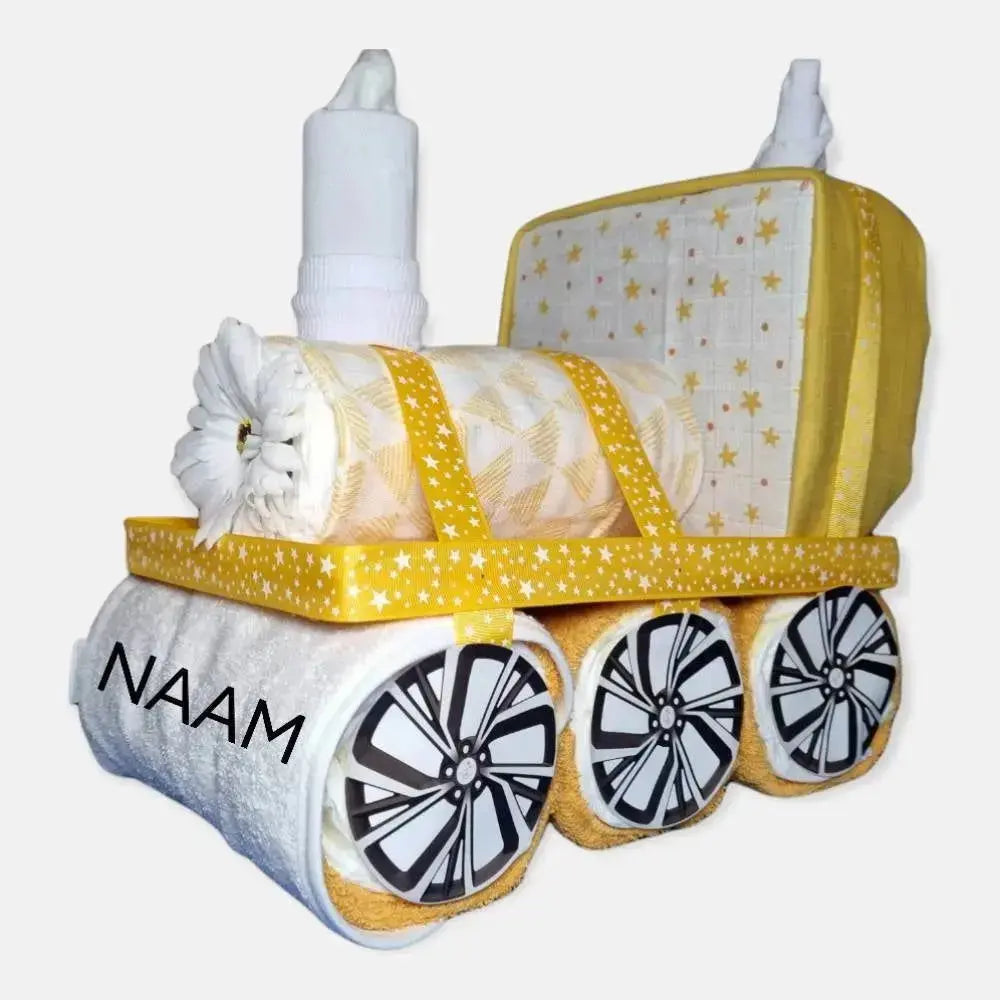 Een warm en origineel babycadeau! In Trein Luiertaart Oker zitten de volgende artikelen: