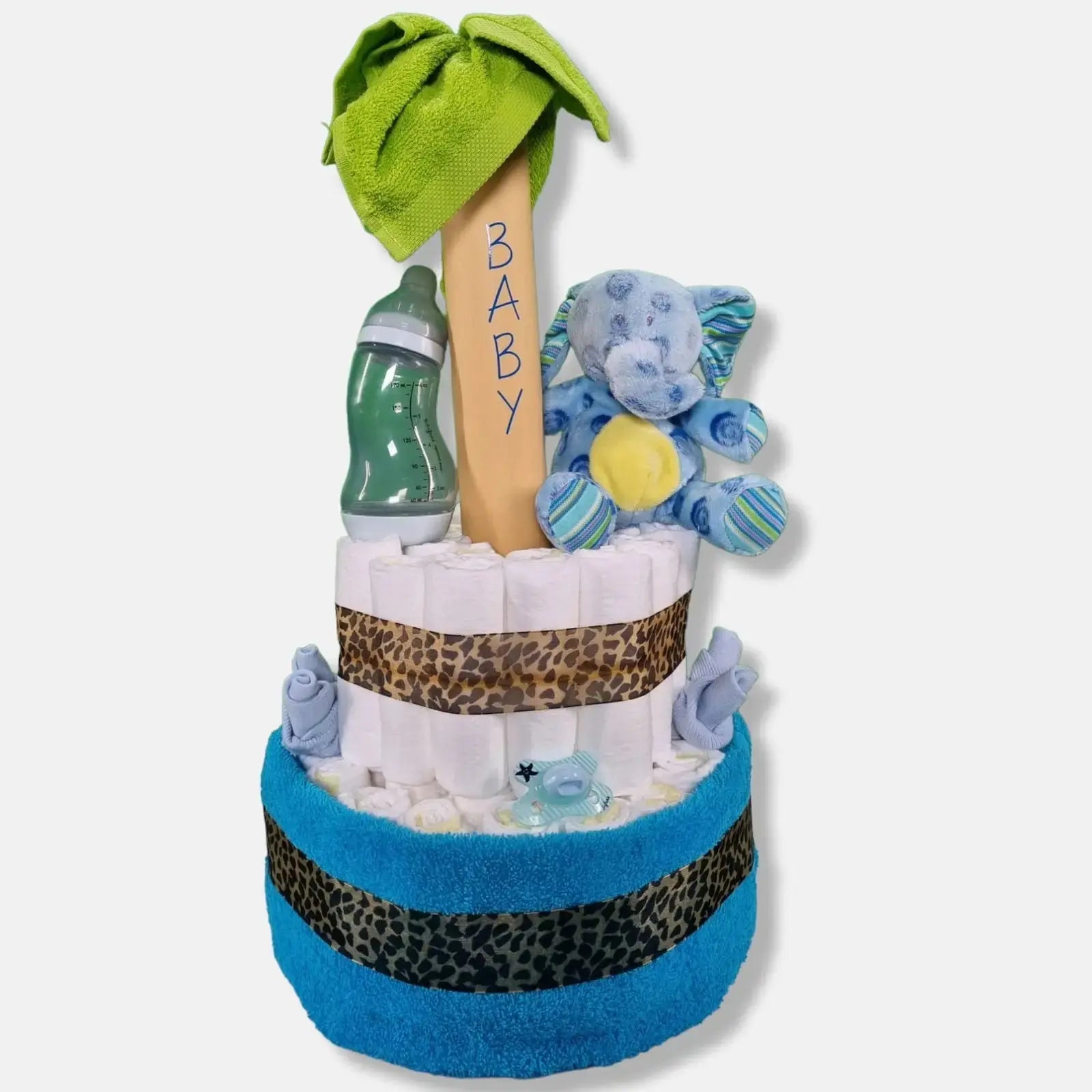 De Tropical Jungle Luiertaart Blauw is een stoer en fris kraamcadeau dat perfect is voor de geboorte van een jongetje. Deze Tropical Jungle Luiertaart Blauw brengt het jungle-thema op een stijlvolle manier naar de babykamer. Met zijn tropische accenten, blauwe details en functionele inhoud is deze Tropical Jungle Luiertaart Blauw een echte eyecatcher. De taart is rijkelijk gevuld met Pampers luiers en tropische details zoals een jungleknuffeltje, gastendoekjes, monddoekje, een Nuby speentje, flesje en schattige sokjes. Alles is zorgvuldig gepresenteerd en aangekleed met leuke accessoires in jungle-stijl. Of het nu voor een babyshower of kraamvisite is: met deze Tropical Jungle Luiertaart Blauw geef je een origineel en praktisch cadeau waar iedereen blij van wordt. De combinatie van jungle vibes en klassieke blauwtinten maakt deze luiertaart stoer én vertederend tegelijk. Het geeft warmte aan je huiskamer en je krijgt gelijk die tropische vibes!